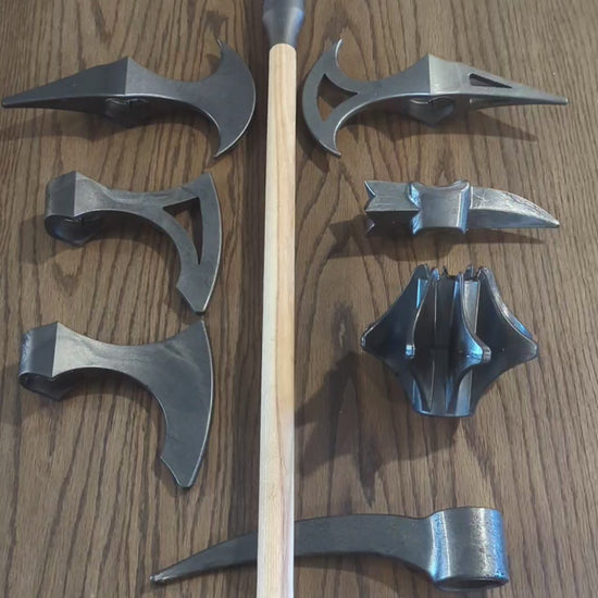 Training axe head for HEMA and other martial arts with snap on socket and skeletonized blade section designed to simulate a beard axe of the Viking age. This axe head is removable and replaceable when paired with Giant's Tomb handles, but can be fixed to your own custom handles if desired (contact for dimensions). The cut out section in the center of the blade improves shock absorption and flexibility when compared to the solid bearded axe head.