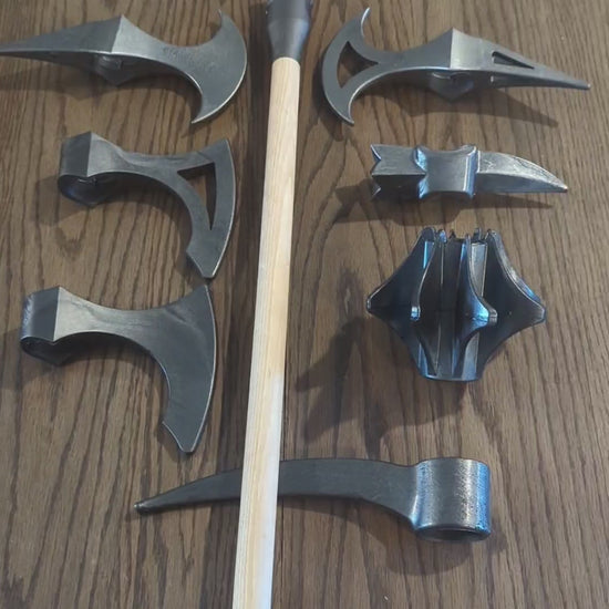 Training axe head for HEMA and other martial arts with snap on socket and skeletonized blade section designed to simulate a late medieval horseman's axe. This axe head is removable and replaceable when paired with Giant's Tomb handles, but can be fixed to your own custom handles if desired (contact for dimensions). The cut out sections in the center of the blade and spike improve shock absorption and flexibility when compared to the solid horseman's axe head.